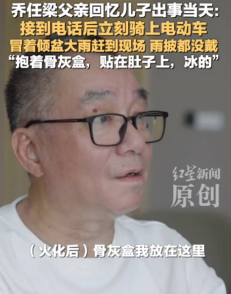 乔康强说,儿子乔任梁从小便聪明伶俐,十分懂事。后来这个被父母捧在手心的孩子以歌手身份正式出道,成了明星。然而最终父母等到的,却是儿子离世的噩耗。乔任梁父亲提及火化后,他手捧着儿子骨灰盒的场景。乔康强称:“骨灰盒贴在肚子上冰的。”这是一位父亲此生最痛的时刻,近十年过去,这段记忆依然刻骨铭心。