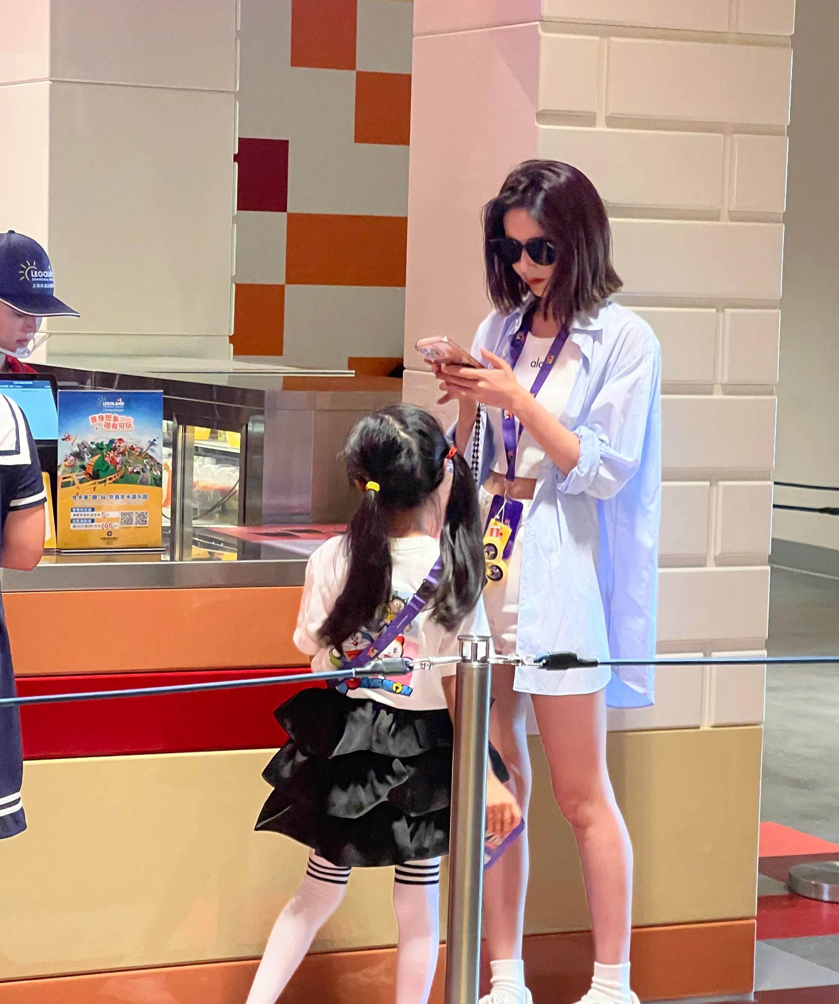 虽然小月亮出镜的画面不多,但当日还有网友晒出偶遇颖儿母女俩的照片。只见小月亮扎着两条长马尾,身穿白色印花t恤和黑色短裤,搭配白色长筒袜,一身打扮看起来好时髦。今年7岁的她继承了父母的好基因,长得好高,都到妈妈胸口位置了,个子纤细高挑,光看背影就知道是漂亮小姑娘。颖儿跟女儿同框,辣妈范十足。